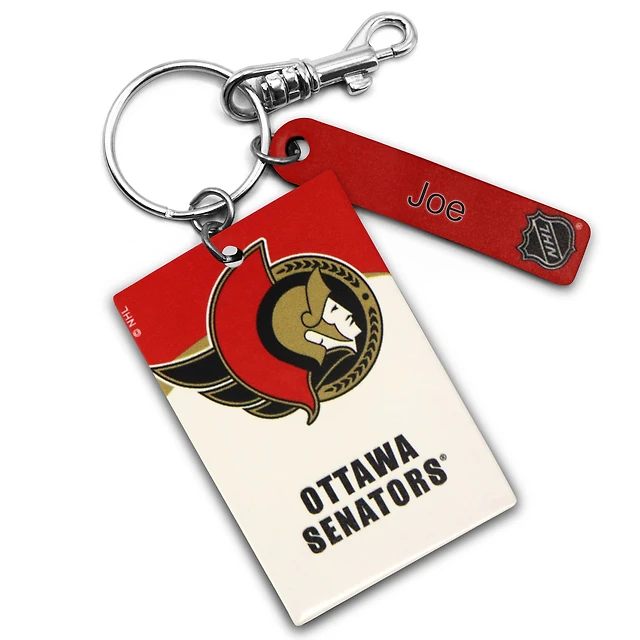 White Ottawa Senators Personalized Leather Rectangle Keychain