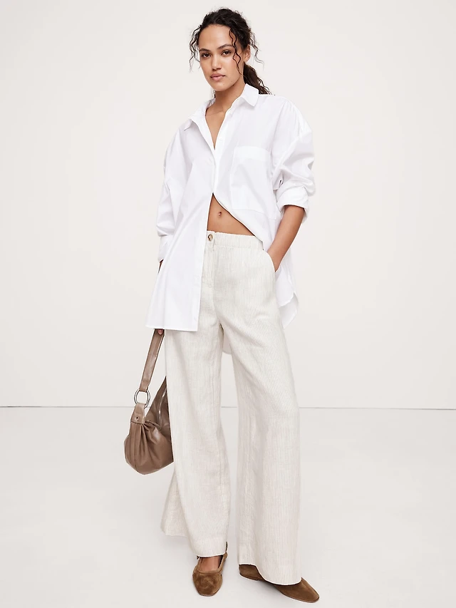 WIDE LEG LINEN PANTS WITH BUTTONS
