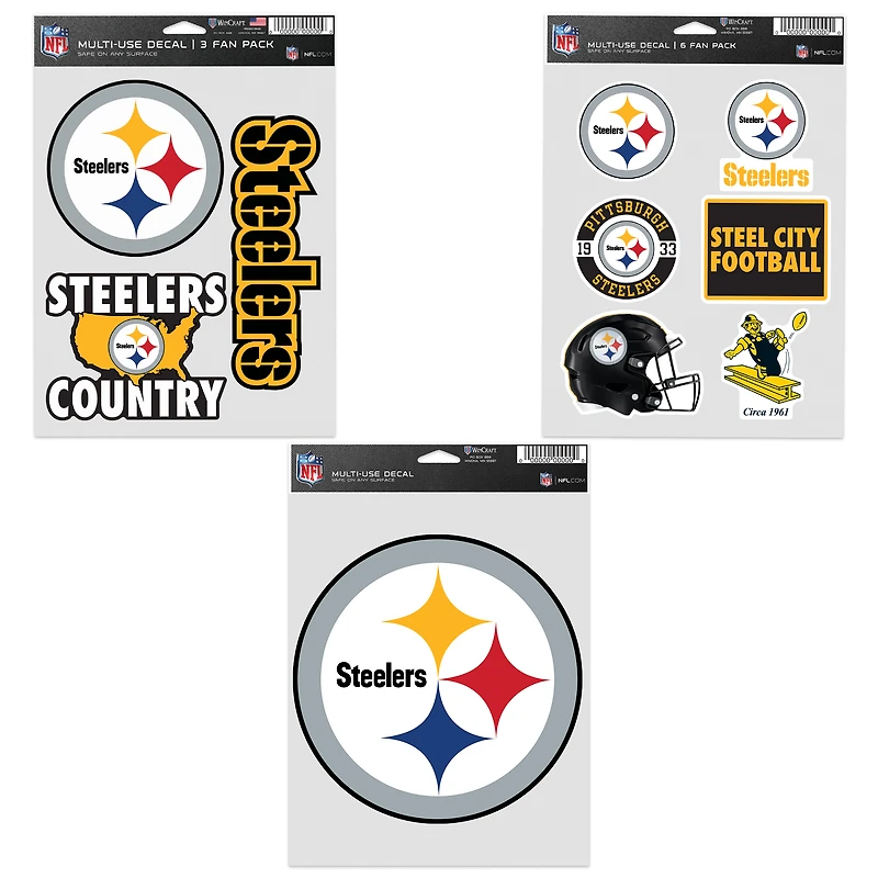 Show off your Pittsburgh Steelers pride with this WinCraft Three-Pack Fan Decal Set. This three-pack of decals boasts a total of 10 stickers, letting you cover your surfaces with vibrant Pittsburgh Steelers spirit. Safe for use on any surface, these decals let you rep your team pride wherever you go, from your car to your laptop.