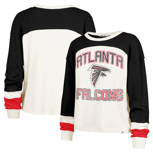 Women's '47 Cream Atlanta Falcons Double Header Curve Raglan Long Sleeve Crop Top