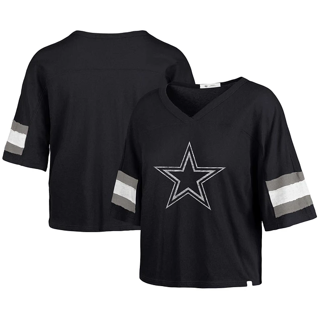 Women's '47 Navy Dallas Cowboys Double Header Scout Cropped V-Neck T-Shirt