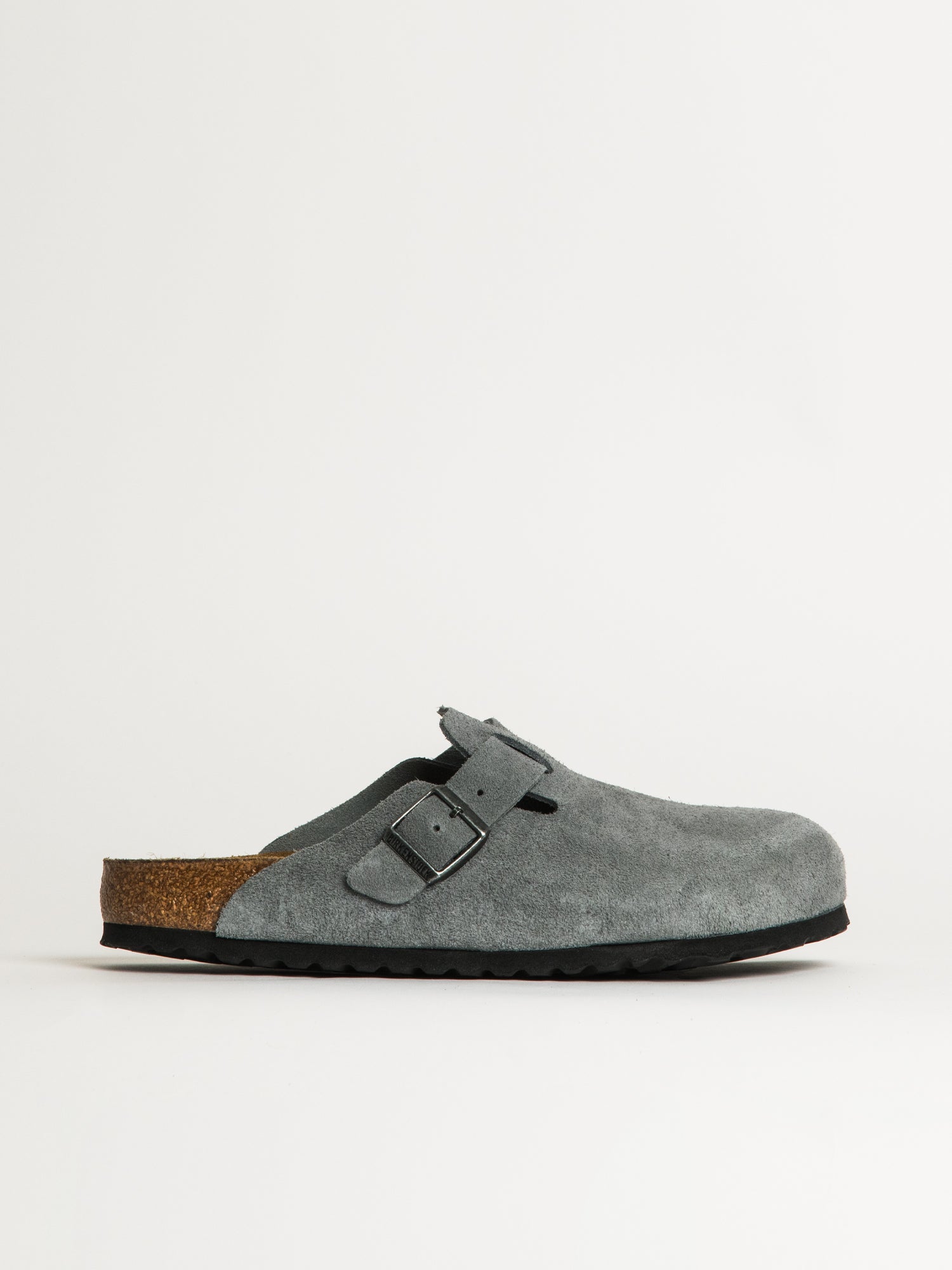 The Boston suede casual clog from Birkenstock with a soft cushioned footbed provides excellent arch support. Durable EVA outsole, cork footbed molds to each individual foot to provide a custom fit. This Birkenstock sandal is a genuine classic, emphasizing the handcrafted and natural look of stylish sandals. A comfort legend and a fashion staple.