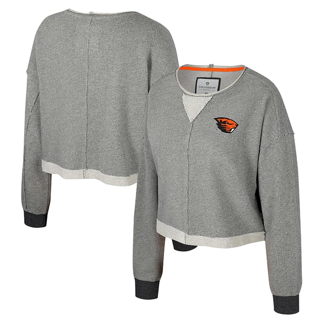 Women's Colosseum Charcoal Oregon State Beavers Magnum Scoop Neck Cropped Pullover Sweatshirt