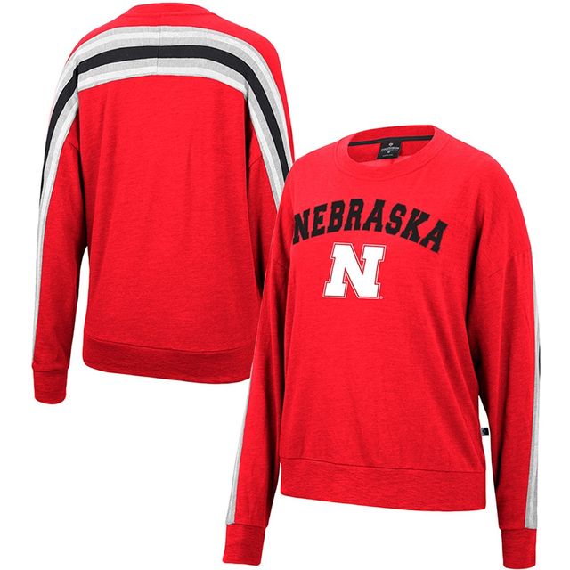 Women's Colosseum Heathered Scarlet Nebraska Huskers Team Oversized Pullover Sweatshirt