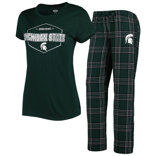 Women's Concepts Sport Green/Black Michigan State Spartans Badge T-Shirt & Flannel Pants Sleep Set