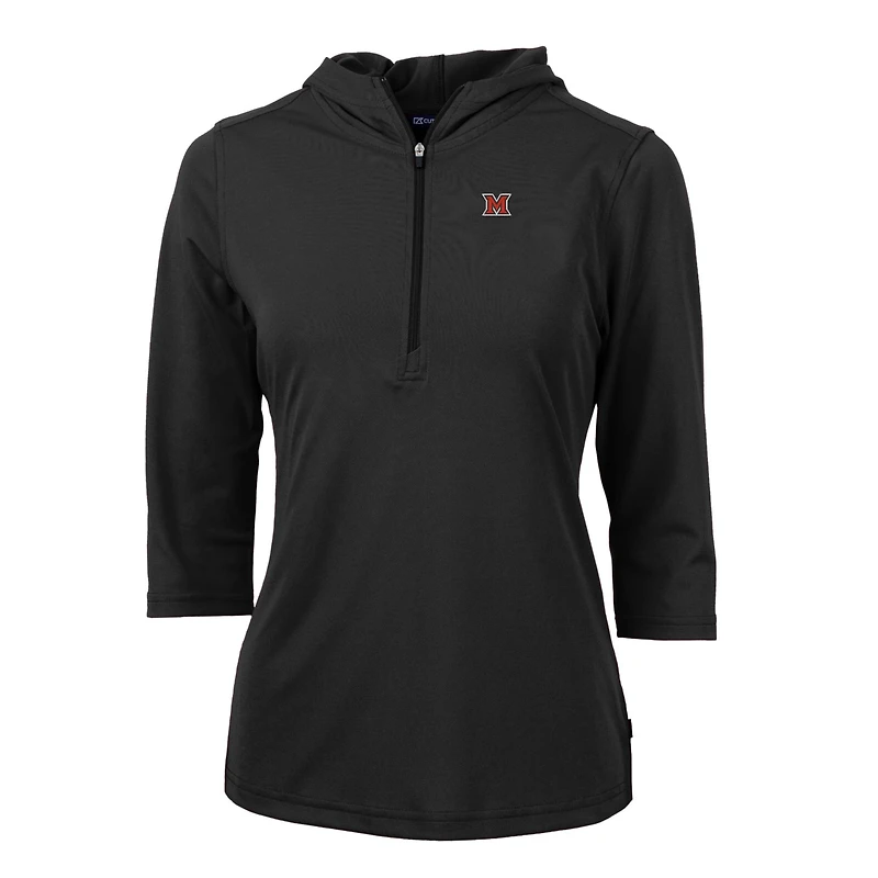 Women's Cutter & Buck Black Miami University RedHawks Virtue Eco Pique Half-Zip 3/4 Sleeve Pullover Hoodie