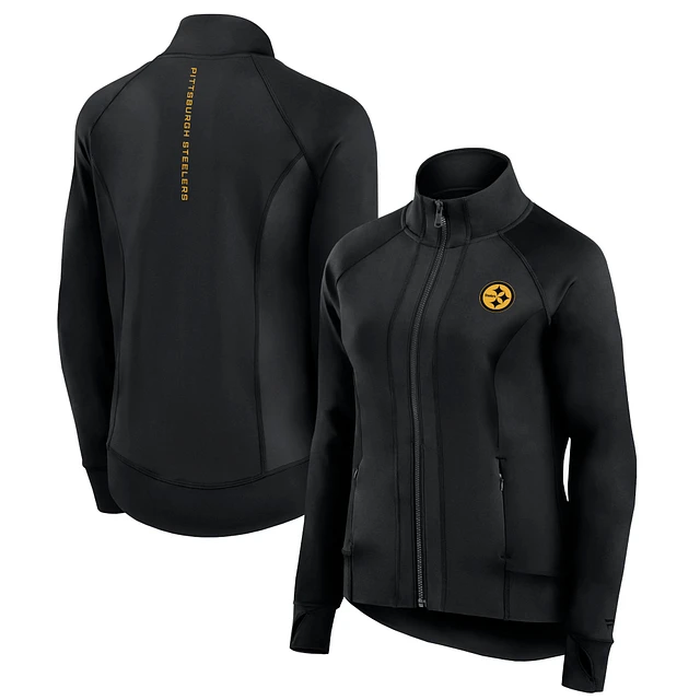 Women's Fanatics Black Pittsburgh Steelers Studio Fitted Full-Zip Gym Track Jacket