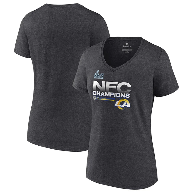 Women's Fanatics Heathered Charcoal Los Angeles Rams 2021 NFC Champions Locker Room Trophy Collection V-Neck T-Shirt