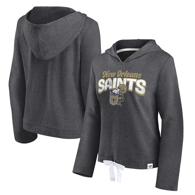 Women's Fanatics Heathered Charcoal New Orleans Saints True Classics Fleece V-Neck Pullover - Hoodie