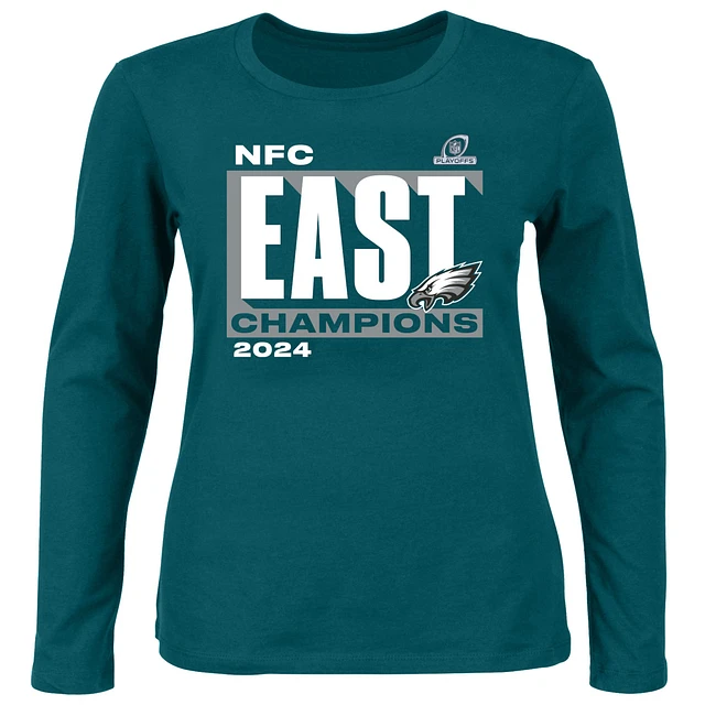 Women's Fanatics Midnight Green Philadelphia Eagles 2024 NFC East Division Champions Plus Scoop Neck Long Sleeve T-Shirt