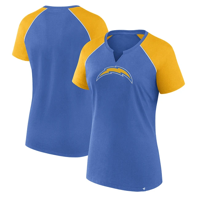 Women's Fanatics Powder Blue/Gold Los Angeles Chargers Glittered Primary Raglan T-Shirt