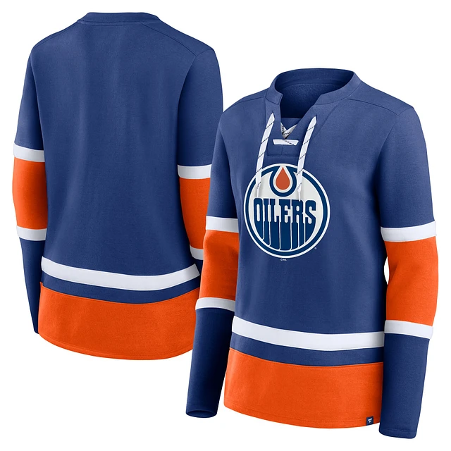 Women's Fanatics Royal/Orange Edmonton Oilers Prime Time Lace-Up Long Sleeve T-Shirt