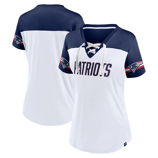 Women's Fanatics White New England Patriots Dueling Slant V-Neck Lace-Up T-Shirt