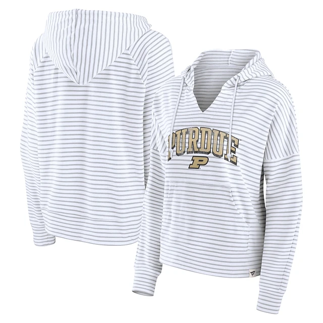 Women's Fanatics White/Gray Purdue Boilermakers Arch Logo Striped Notch Neck Pullover Hoodie