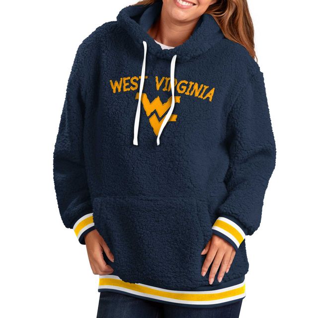 Women's G-III 4Her by Carl Banks Navy West Virginia Mountaineers Game Over Sherpa Pullover Hoodie