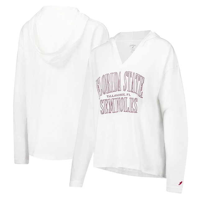 Women's League Collegiate Wear White Florida State Seminoles Slub Long Sleeve V-Neck Hoodie T-Shirt