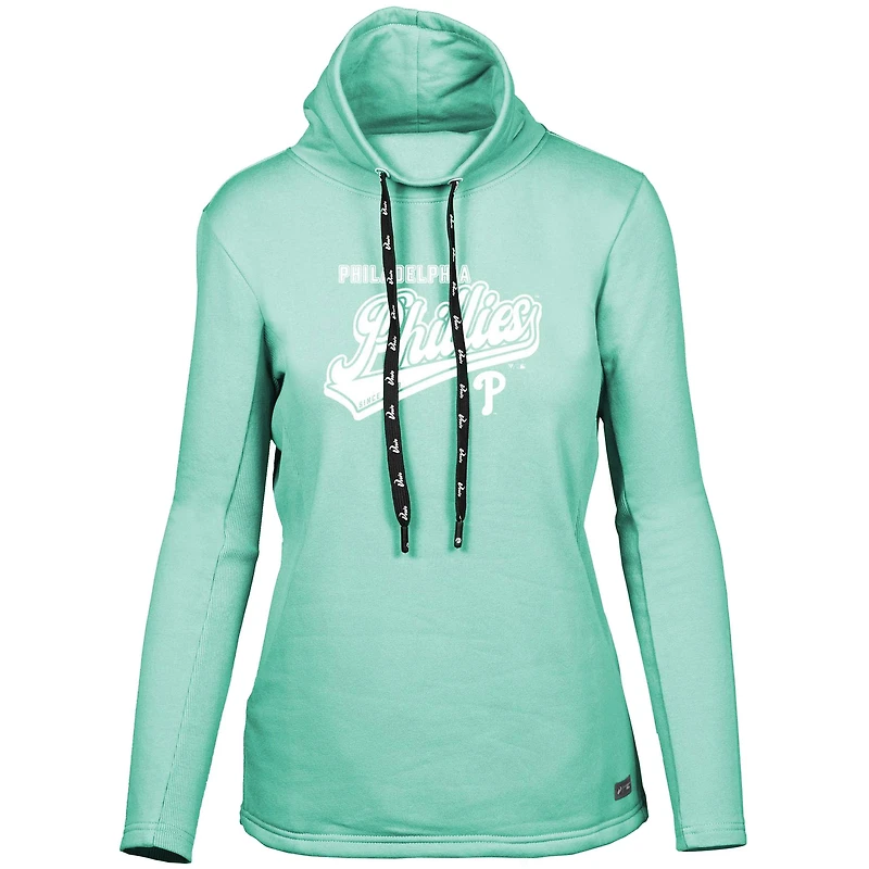 The Women's Levelwear Mint Philadelphia Phillies Loop Sweep Pullover Sweatshirt is the perfect way to show your support for the Phillies. Made from a comfortable cotton and polyester blend, this midweight sweatshirt features a high funnel neck and front pouch pocket for added warmth and convenience. Rib-knit side panels provide a comfortable fit, while screen-printed graphics proudly display your Philadelphia Phillies pride. Whether you're cheering from the stands or simply showing your support, this sweatshirt is the perfect way to represent the Phillies in style.