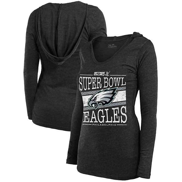 Women's Majestic Threads Heather Charcoal Philadelphia Eagles Super Bowl LIX Dapper Tri-Blend V-Neck Long Sleeve Hoodie T-Shirt