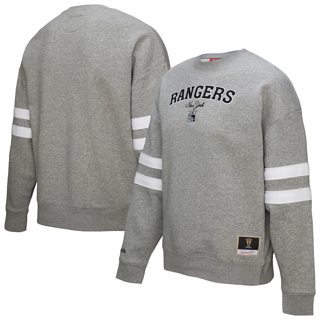 Women's Mitchell & Ness Heather Gray New York Rangers Logo Lightweight Pullover Sweatshirt