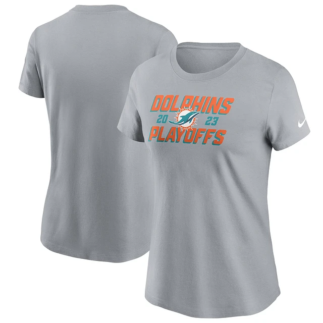 Women's Nike Gray Miami Dolphins 2023 NFL Playoffs Iconic T-Shirt