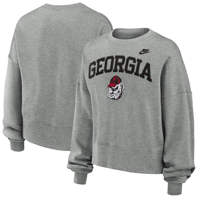 Women's Nike Heather Gray Georgia Bulldogs Legacy Fleece Classic Arch Oversized Cropped Tackle Twill Sweatshirt