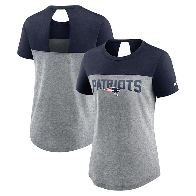 Women's Nike Heathered Charcoal/Navy New England Patriots Wordmark Keyhole Fashion Tri-Blend T-Shirt