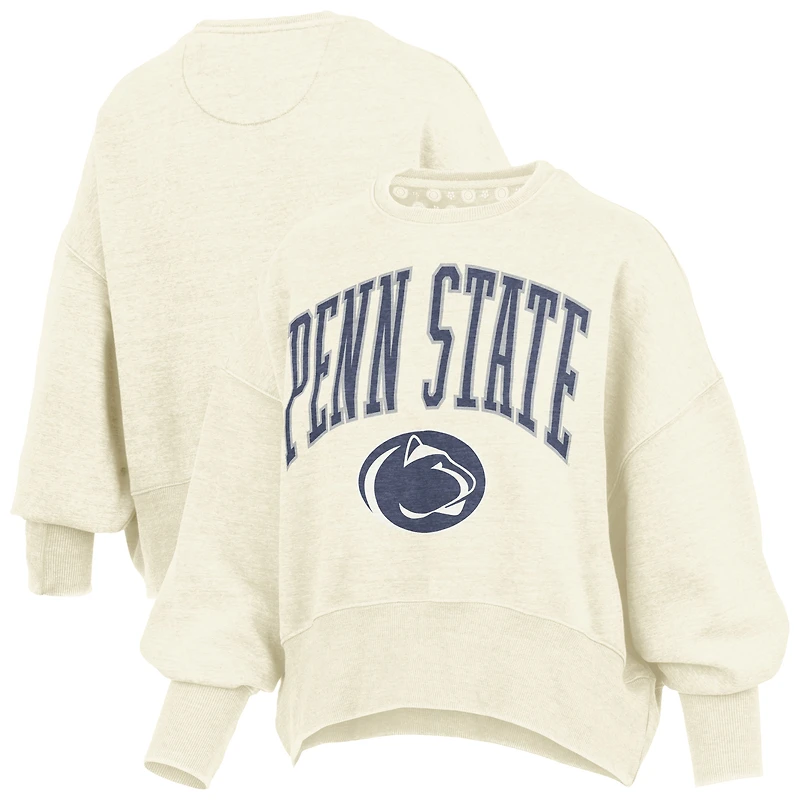 Women's Pressbox Natural Penn State Nittany Lions Oversized Waist-Length Crewneck Sweatshirt