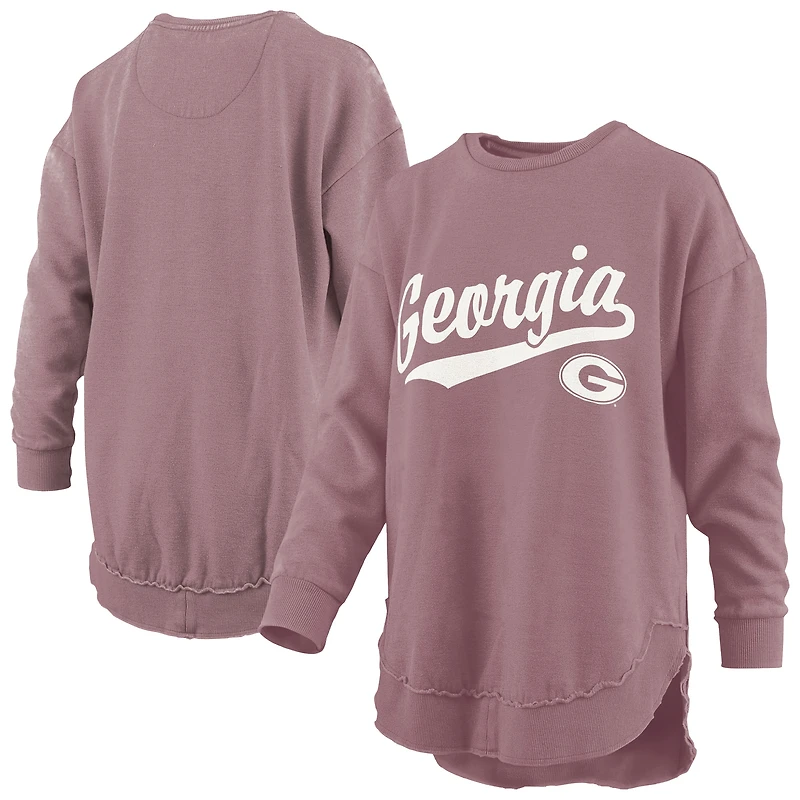Stay warm and comfy while cheering on the Georgia Bulldogs in this Poncho Fleece Pullover Sweatshirt by Pressbox. It features cozy fleece lining for an extra-soft feel and added warmth in cooler weather. The trendy dropped shoulders and rounded droptail hem with an unfinished edge give this Georgia Bulldogs sweatshirt a relaxed and flattering fit.