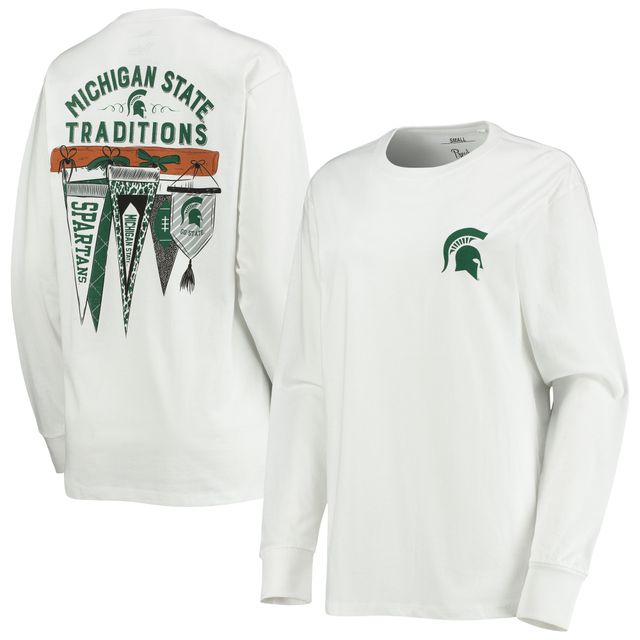 Women's Pressbox White Michigan State Spartans Traditions Pennant Long Sleeve T-Shirt