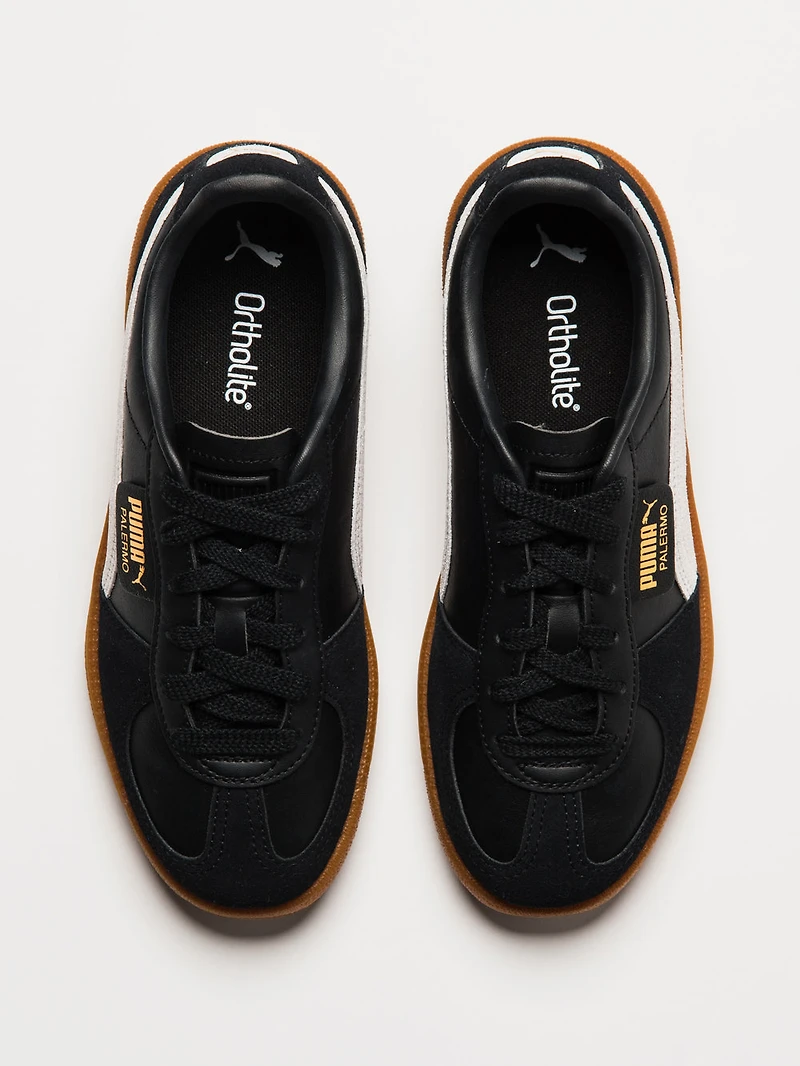 WOMENS PUMA PALERMO LEATHER SNEAKER - BLACK/FEATHER GRAY/GUM