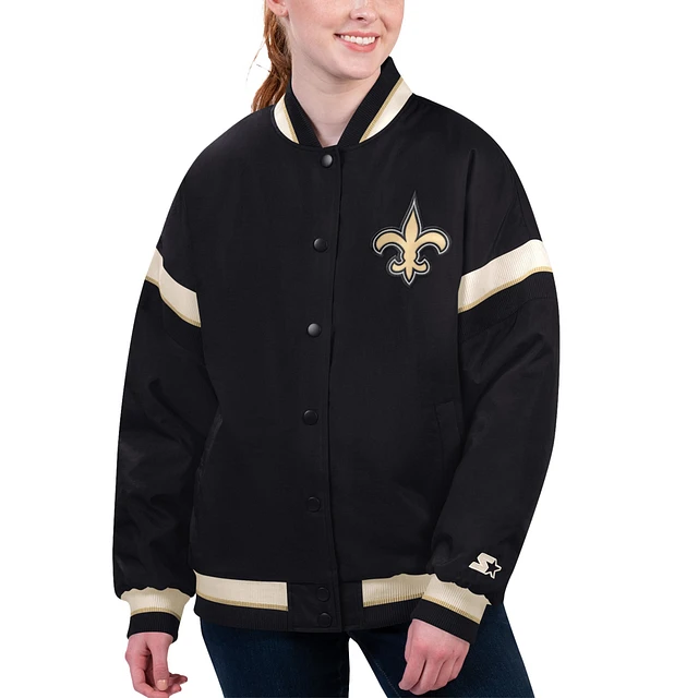 Women's Starter Black New Orleans Saints Tournament Full-Snap Varsity Jacket
