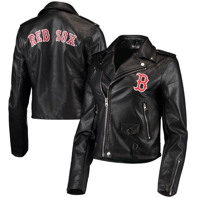 Women's The Wild Collective Black Boston Red Sox Faux Leather Moto Full-Zip Jacket