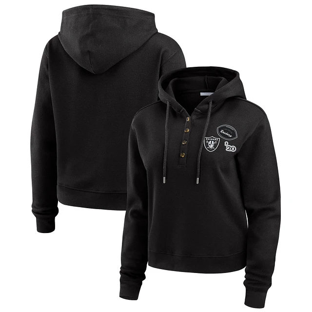 Women's WEAR by Erin Andrews Black Las Vegas Raiders Waffle Hoodie Pullover Top