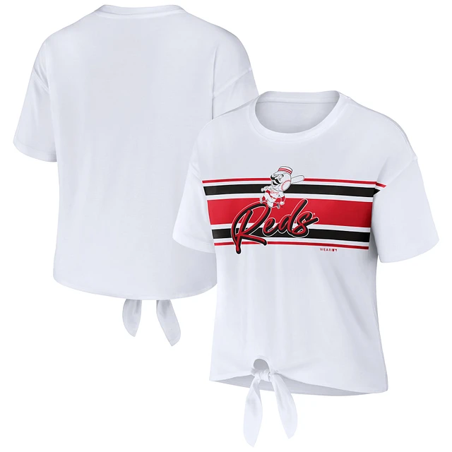 Women's WEAR by Erin Andrews White Cincinnati Reds Tie-Front T-Shirt
