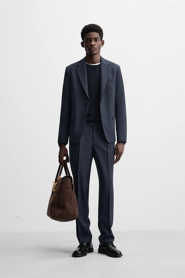HERRINGBONE WOOL BLEND SUIT BLAZER