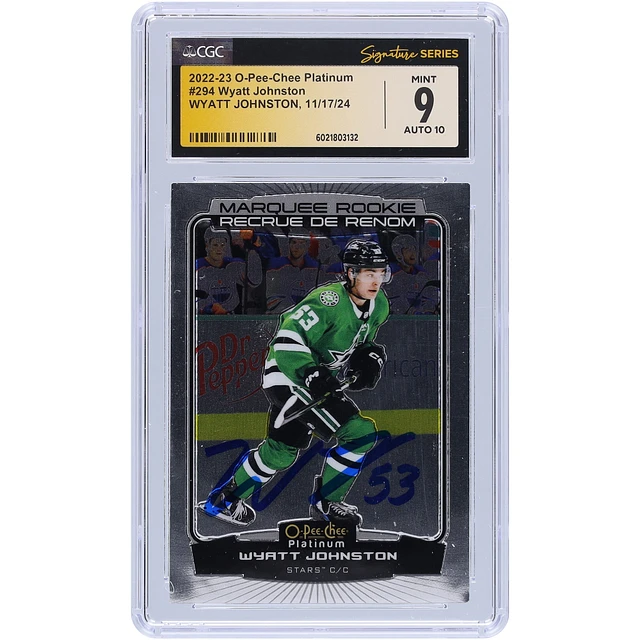 Wyatt Johnston Dallas Stars Autographed 2022-23 Upper Deck O-Pee-Chee Platinum #294 CGC Fanatics Witnessed Authenticated 9/10 Rookie Card