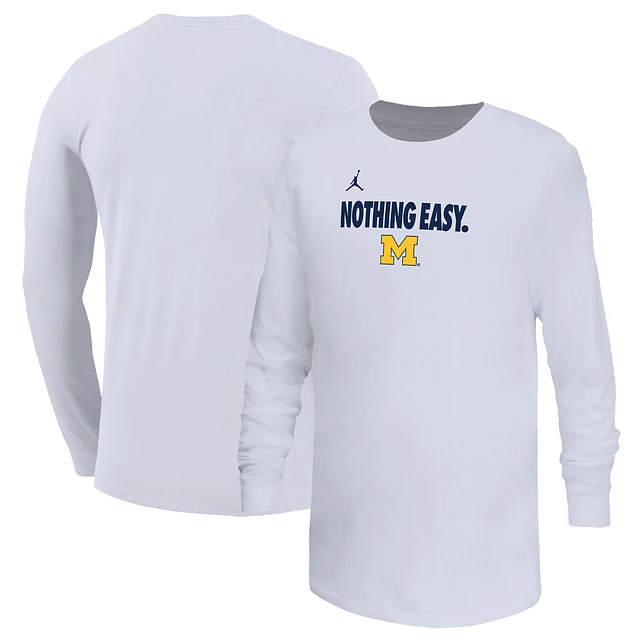 Youth Jordan Brand White Michigan Wolverines 2025 On-Court Bench Long Sleeve T-Shirt