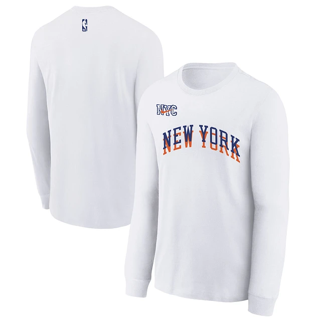 Youth Nike White New York Knicks 2024/25 City Edition Wordmark Performance Long Sleeve T-Shirt
