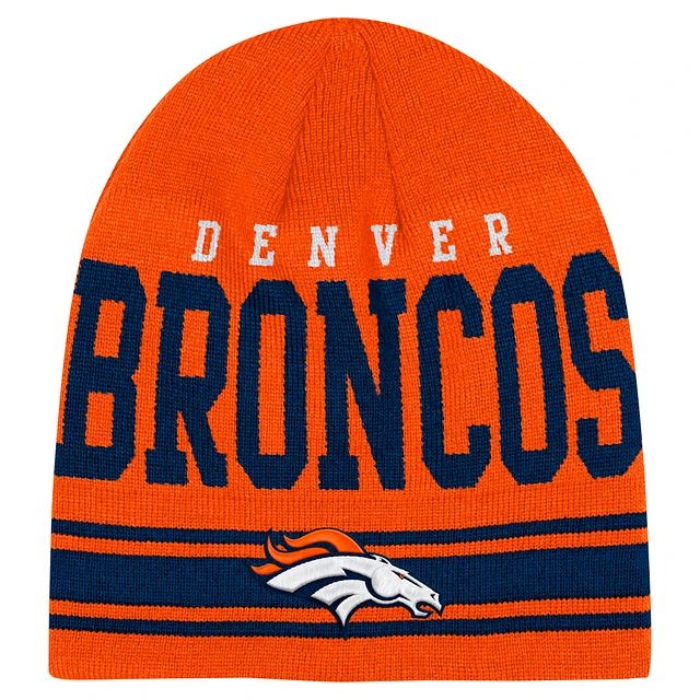 Youth New Era Cream/Orange Denver Broncos 2022 Sideline Sport Cuffed Pom Knit Hat