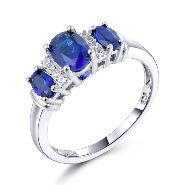 Sterling Silver Created Sapphire & Created White Sapphire Ring