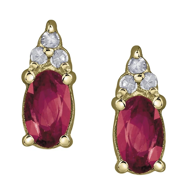 10K Yellow Gold Ruby & 0.05CTW Diamond Earrings
