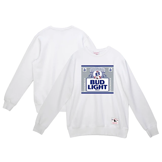 Men's Mitchell & Ness x Bud Light White New England Patriots The Crest Pullover Sweatshirt