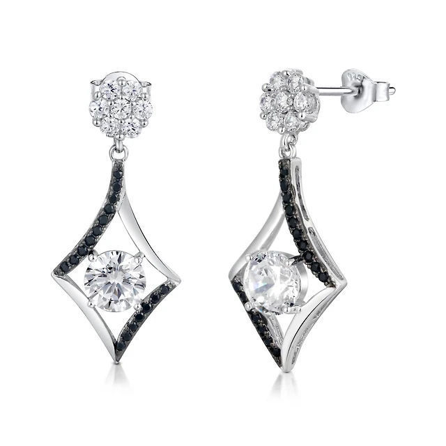 Sterling Silver Black & White Cubic Zirconia Drop Earrings