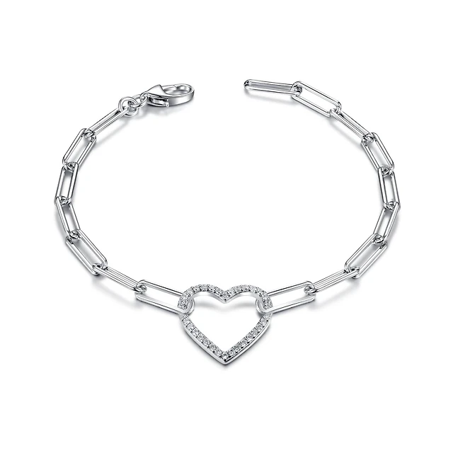 Sterling Silver Cubic Zirconia Footprint Heart 19" Pendant