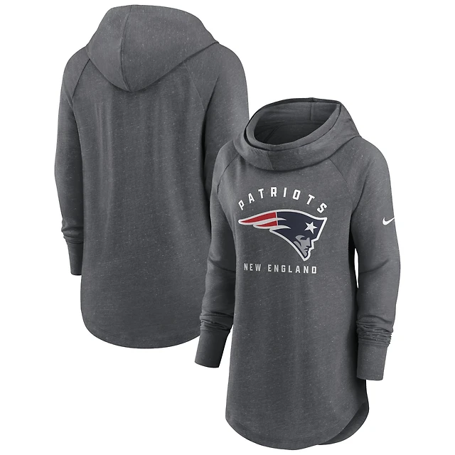Women's Nike Heather Charcoal New England Patriots Raglan Funnel Neck Pullover Hoodie