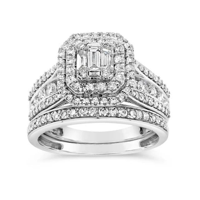 2.00 CT. T.W. Certified Emerald-Cut Lab-Grown Diamond Bridal Set 14K White Gold (F/VS2)
